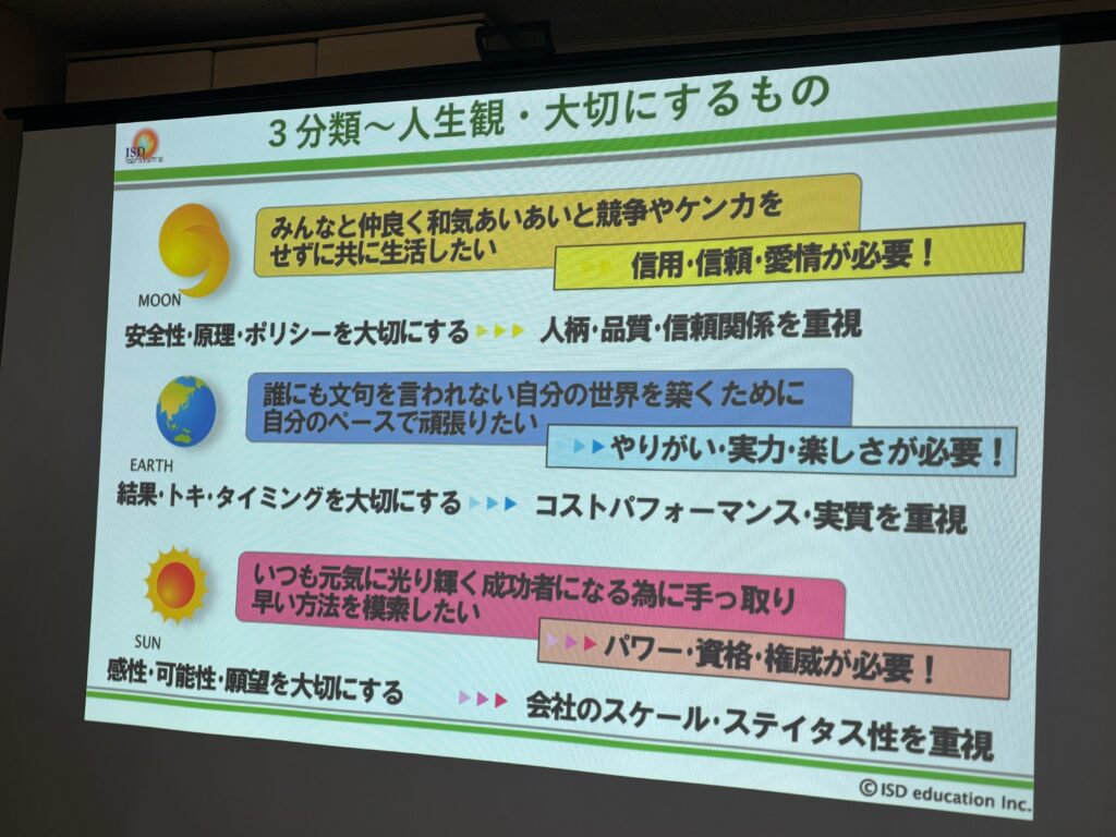 先日、社内研修としてISD個性心理学の先生をお招きし、社員一人ひとりの個性を診断・分析していただきました。