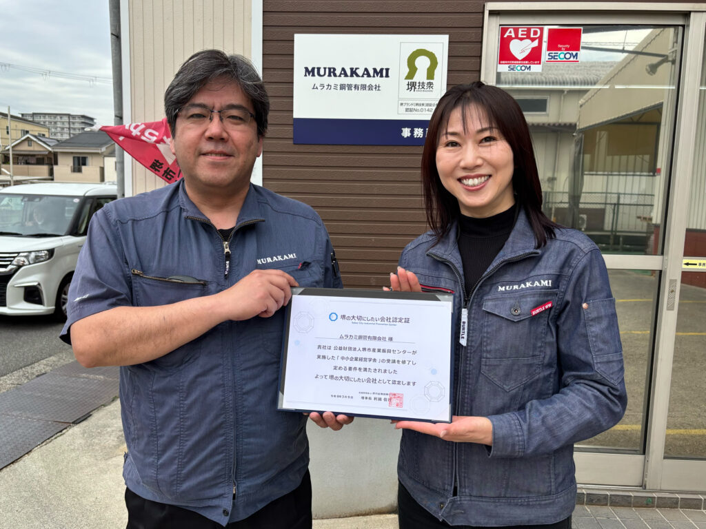 この度、ムラカミ鋼管有限会社は「堺の大切にしたい会社」として認定されました。